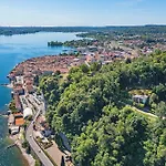 Situada a unos 25 minutos a pie del Parco naturale dei Lagoni di Mercurago, la Stylish Villa & Spectacular Views! - Villa La Rocca Arona invita a los huéspedes a relajarse en una terraza.